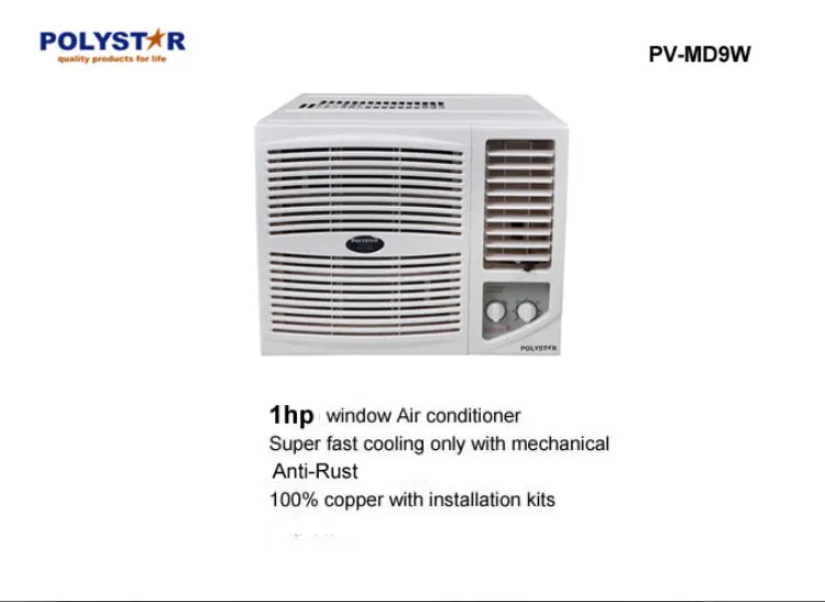 Cool your space efficiently with Polystar’s PV-MD9W, a 1HP windows unit air conditioner featuring compact design, easy installation, and powerful cooling. Polystar PV-MD9W is a 1HP windows unit air conditioner designed for efficient cooling and compact design.