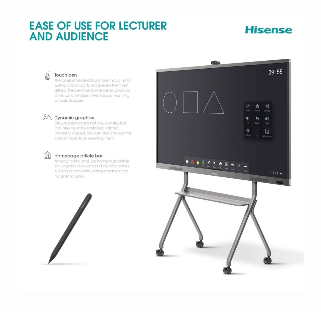 GoBoard supports Webcast, Miracast, DLNA, dongle transfer, Hisenseshare, etc. Dual WiFi modules simultaneously support a screen-sharing hotspot and Wi-Fi network connection. With low image latency, you’ll enjoy a faster, more stable connection.