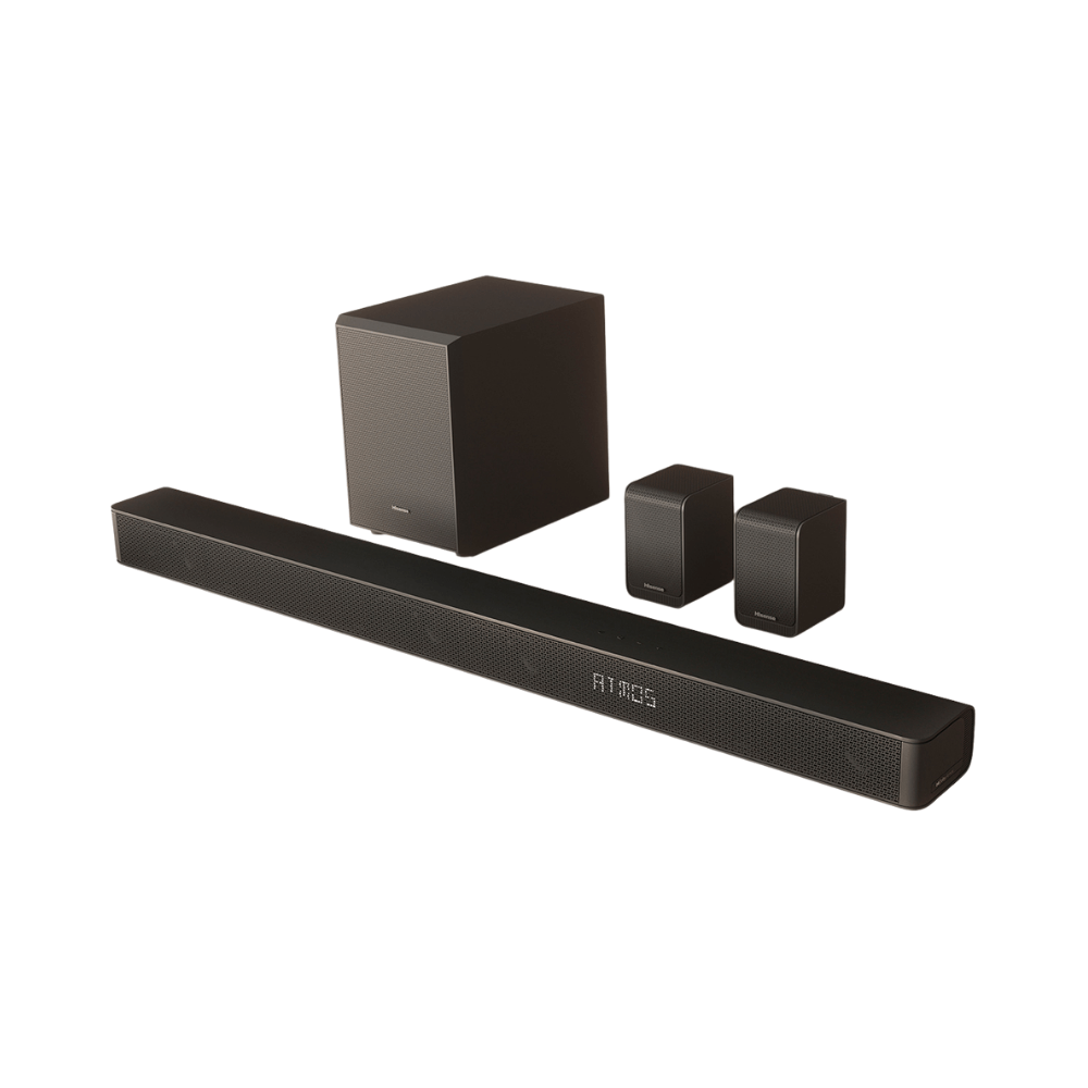 Equipped with 340 watts of total power, this Hisense Soundbar delivers room-filling, high-quality sound with precise audio detailing and deep bass. Whether you’re watching action-packed movies, listening to music, or playing video games, the high-powered soundbar and wireless subwoofer work together to create dynamic and immersive audio with crystal-clear clarity.