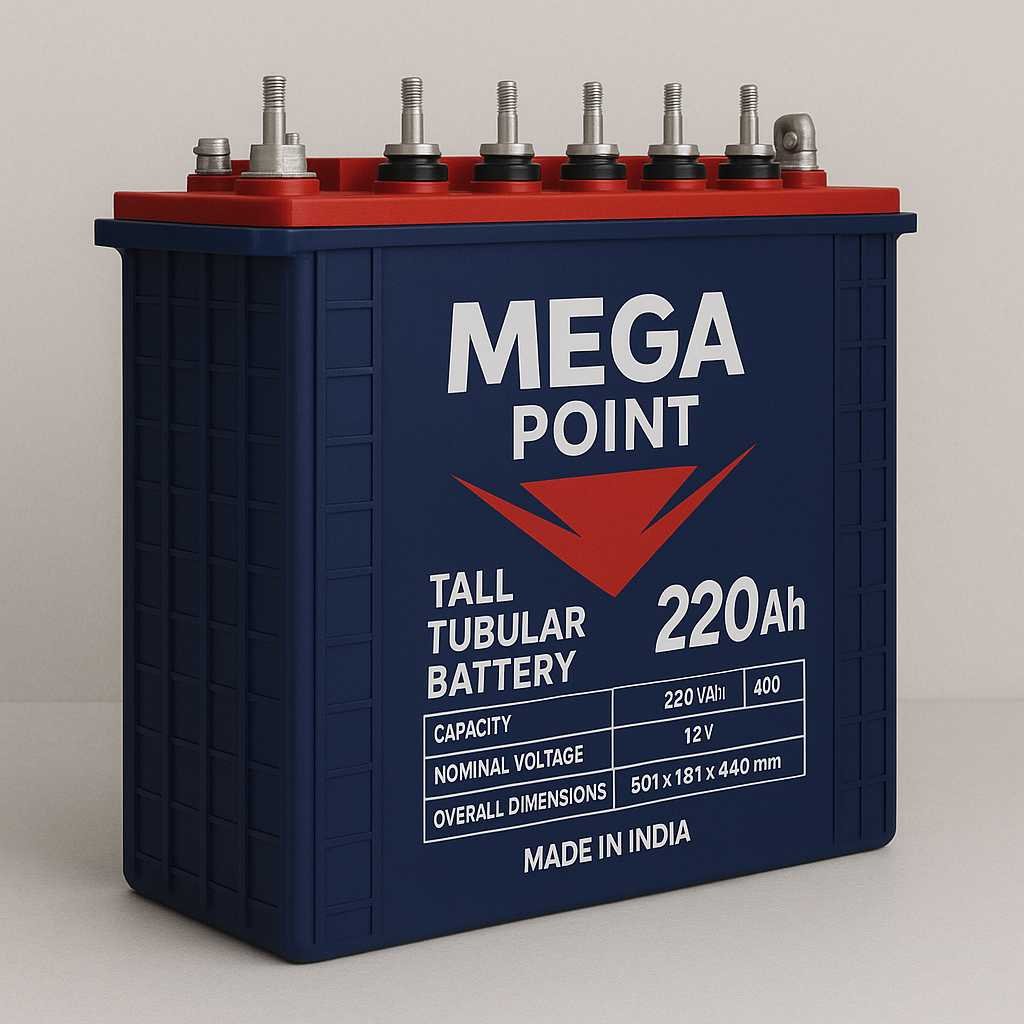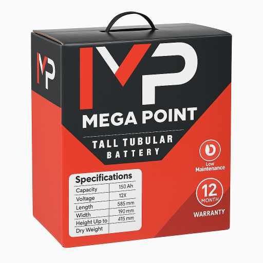 The Mega Point Tall Tubular Battery is not just a battery, it’s your home and business’s most reliable power partner. Crafted using advanced tubular plate technology, this high-capacity 12V battery delivers superior backup for inverters and solar systems, ensuring you stay powered even during extended outages.